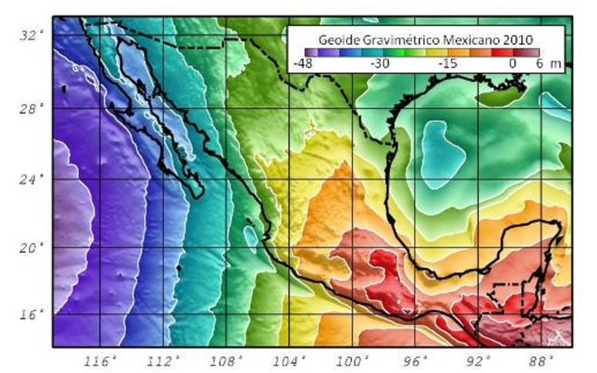 El geoide MEXICO97 es un modelo de alta resolucion, gravimetrico, que cubre la region 14-33N, 119-86W.